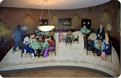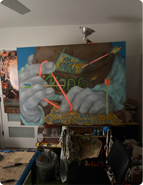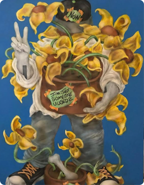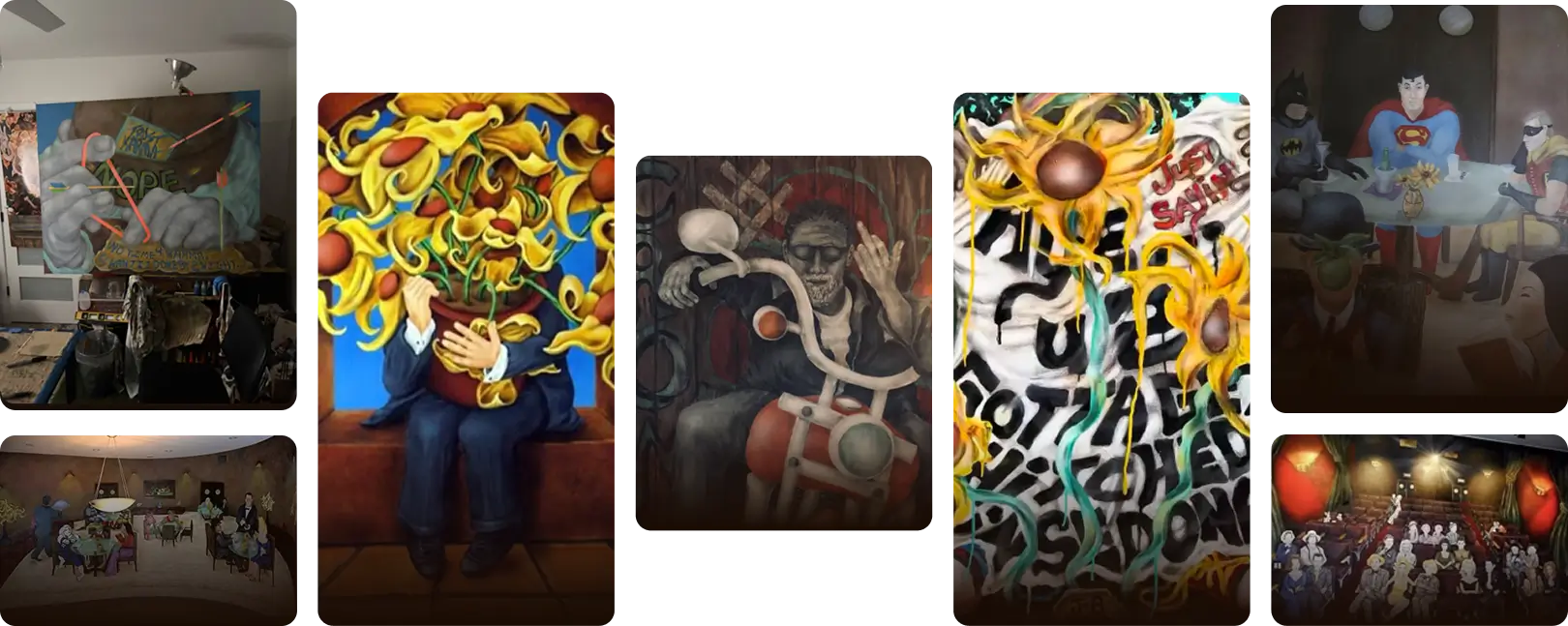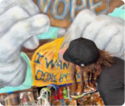 Every person sees something a little different. People stop, look closer, think about what they’re seeing, and gradually piece together their own meaning. The painting isn’t just something to look at, it’s something to explore.